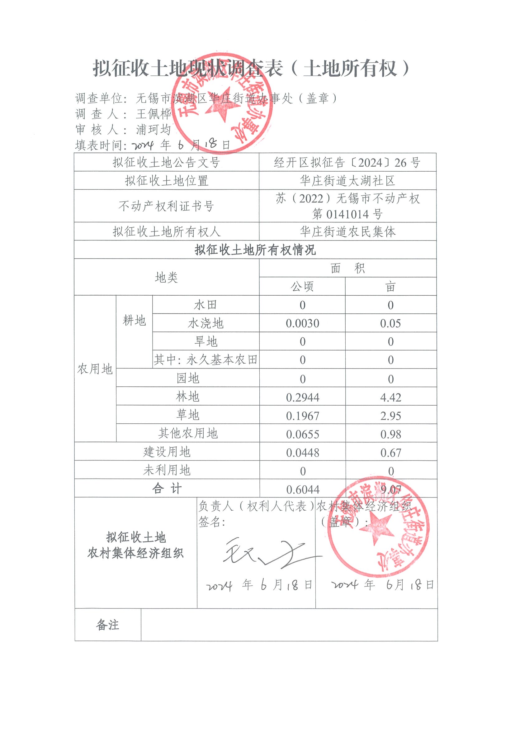 經開區擬征告〔2024〕26號確認--環太湖大堤局部新建工程-華莊街道
