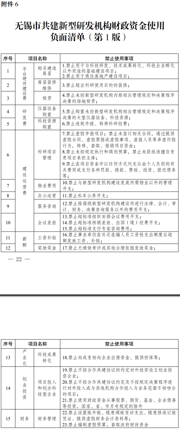 6.無錫市共建新型研發(fā)機(jī)構(gòu)財(cái)政資金使用負(fù)面清單