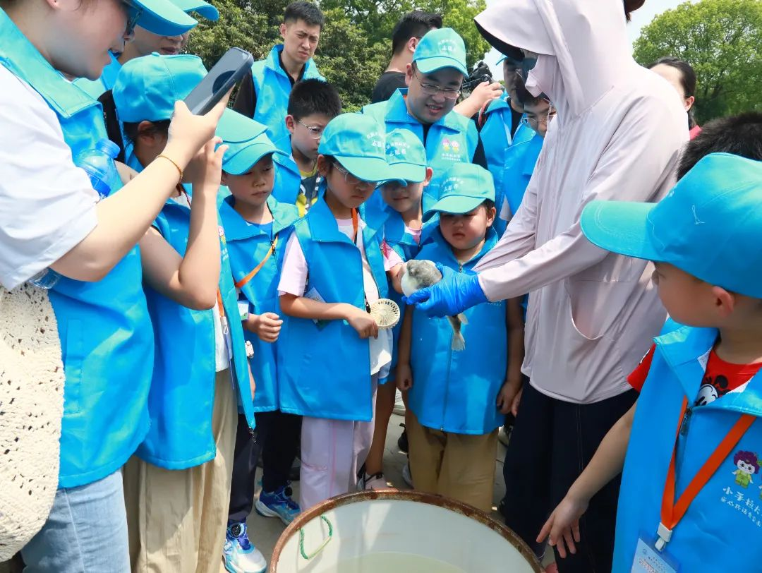 在申港河豚漁村,營員們學習了河豚、鰣魚的棲息環境及生活習性,親手觸摸了“生氣”的河豚,了解了長江大保護“守江人”的故事,共同領略了長江大保護之美。