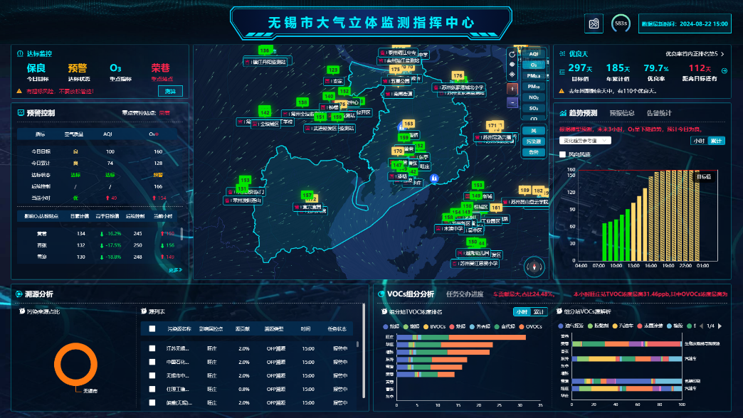 圍繞PM2.5和O3的精準管控和科學治理需求,我市建設了覆蓋全市的大氣環境污染立體監測網絡和大氣污染防控指揮集成系統,增強顆粒物和光化學組分解析、傳輸監測、強化多污染物協同控制和區域協同治理能力,實現大氣環境管理“預警、溯源、評估”。