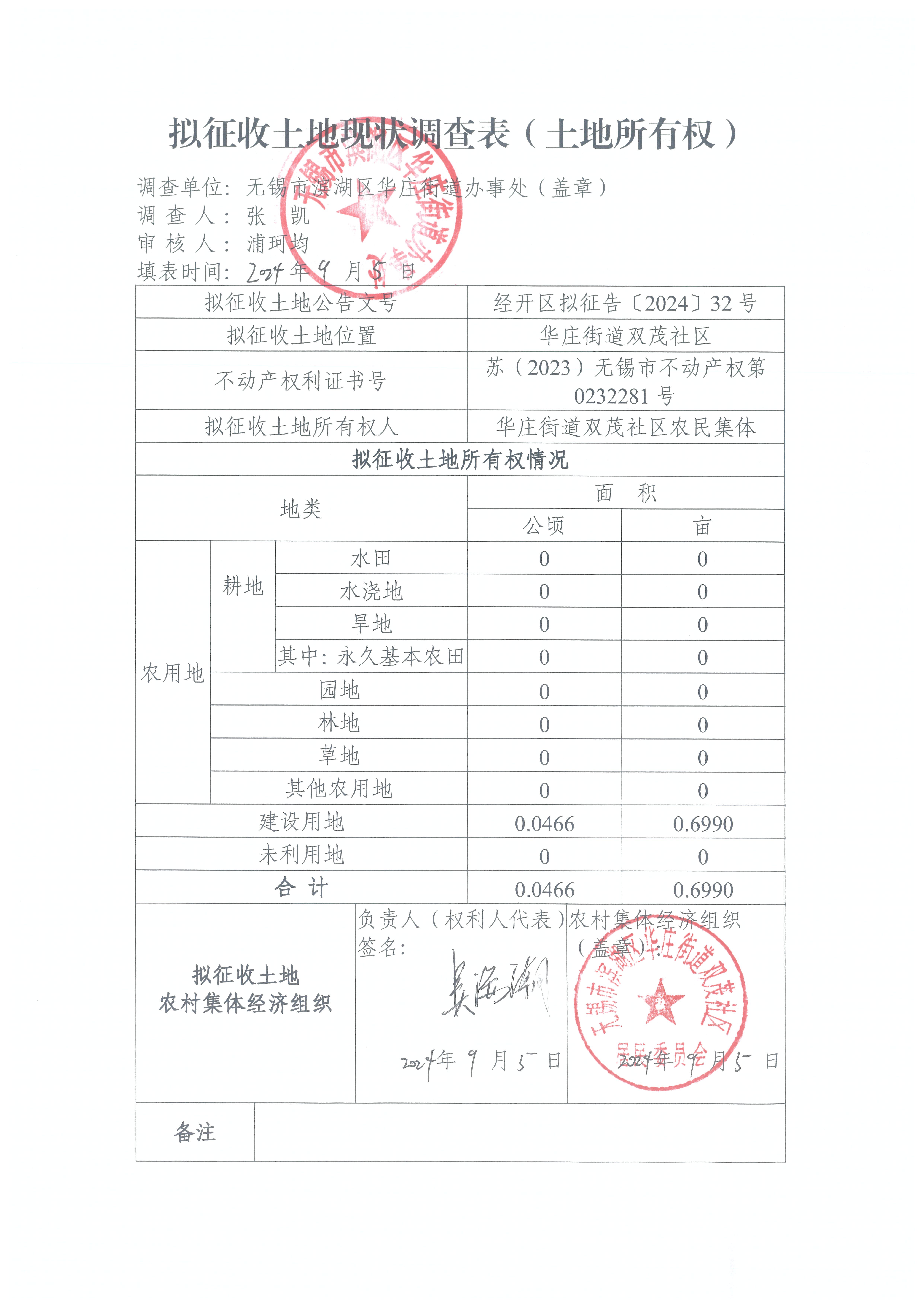 經開區擬征告〔2024〕32號確認-觀順道南延(仁恒湖濱世紀-具區路)新建工程-華莊街道雙茂社區
