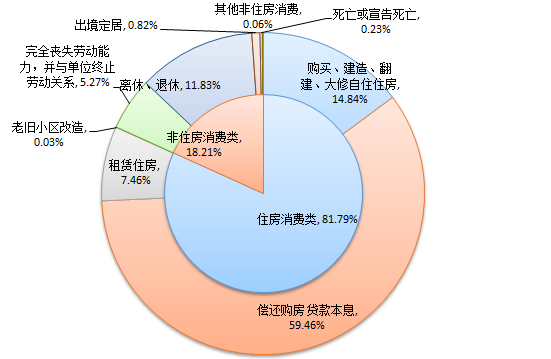 2024年三季度,住房消費類提取金額為54.69億元,環比下降1.64%,占當季提取額的81.79%。其中還貸提取占比最高,提取金額39.76億元,占當季提取額的59.46%。具體提取結構如下: