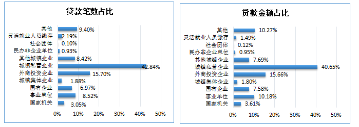 2024年三季度職工貸款筆數及貸款金額按單位性質分類占比圖