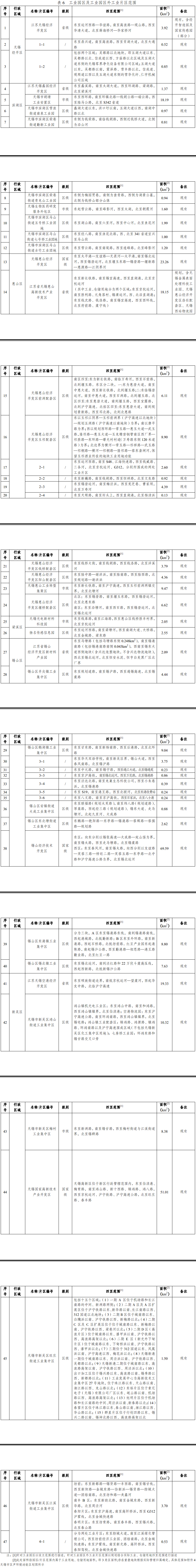 無錫市各級工業(yè)園區(qū)34個(gè),包括梁溪區(qū)2個(gè)、錫山區(qū)8個(gè)、惠山區(qū)8個(gè)、濱湖區(qū)9個(gè)、新吳區(qū)6個(gè)、無錫經(jīng)開區(qū)1個(gè);工業(yè)園區(qū)外仍有部分屬于工業(yè)、倉儲用地13處,包括錫山區(qū)6處、惠山區(qū)4處、新吳區(qū)1處、無錫經(jīng)開區(qū)2處,具體范圍見表6。
