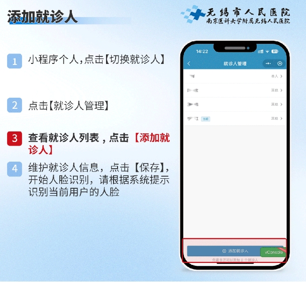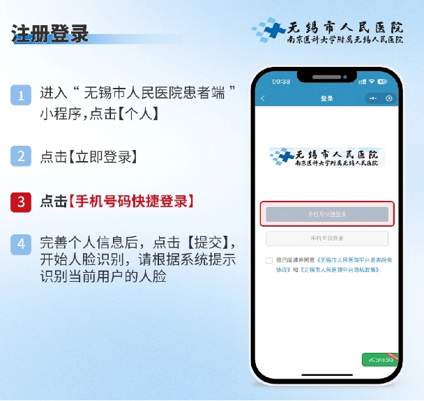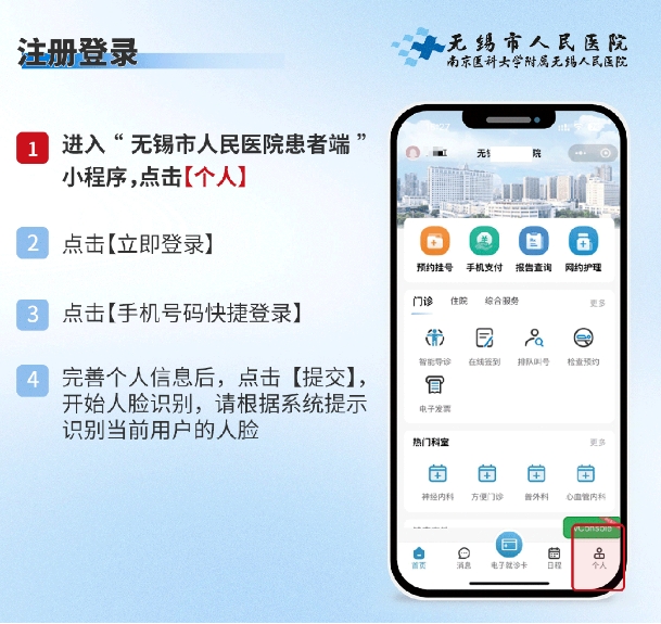 微信搜索并打開“無錫市人民醫(yī)院患者端”小程序,或者掃描下方二維碼進(jìn)入小程序。