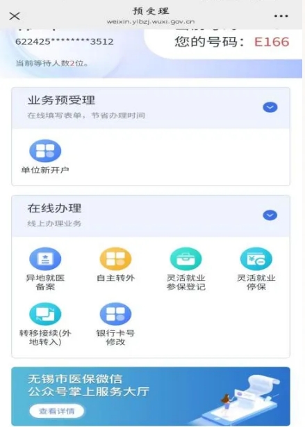 關注微信公眾號“無錫醫保”,使用手機微信掃描號碼紙上的二維碼,留意微信公眾號關于等待人數推送信息,等待期間進入醫保服務預登記界面,選擇“單位新開戶”業務類型,并填寫相關信息。