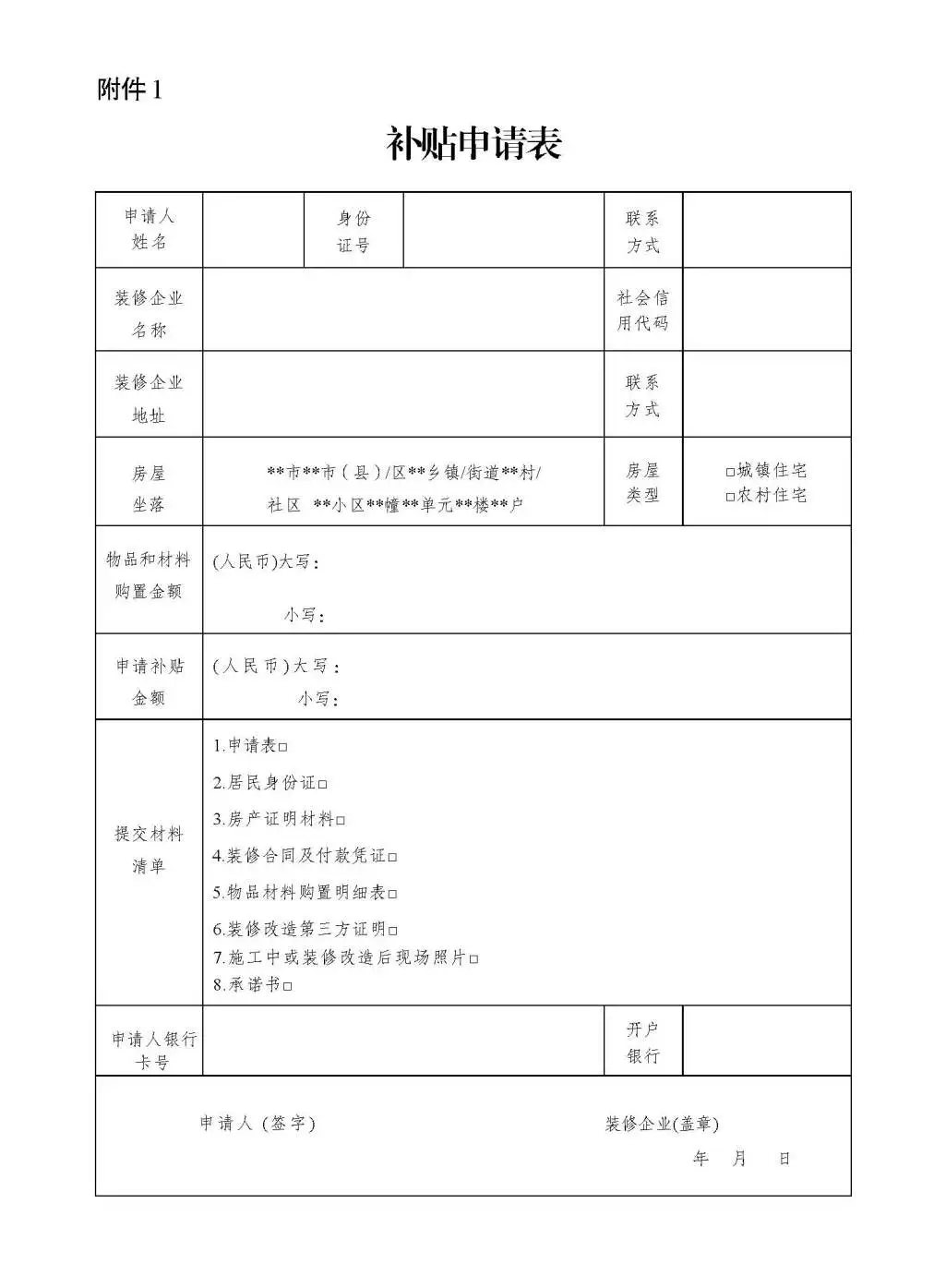(一)申請。符合條件的個人消費者向裝修、改造房屋所在地的市(縣)、區住房城鄉建設主管部門申請。申請材料包括: