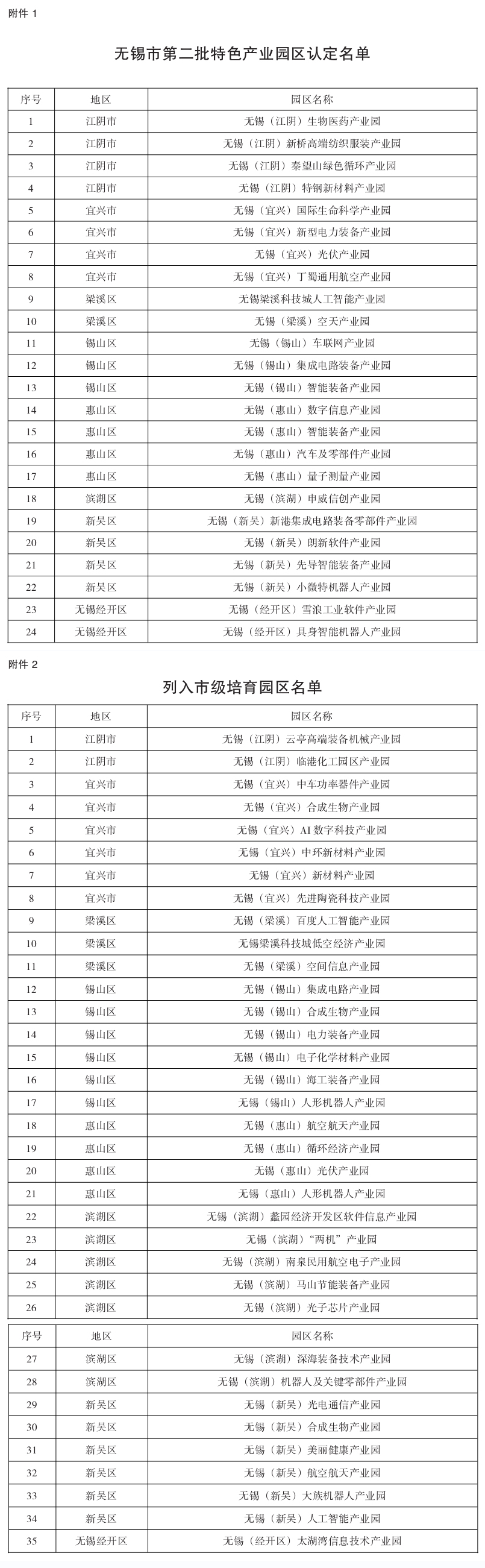 附件: 1. 無錫市第二批特色產業(yè)園區(qū)認定名單