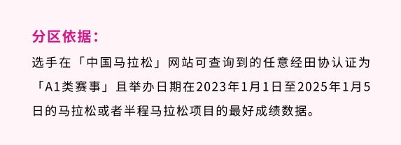 如果你符合該分區對應的報名項目且最好成績達到該分區對應的成績門檻(馬拉松或半程馬拉松中的任意一個)就會被編入相應分區與旗鼓相當的選手一同起跑!