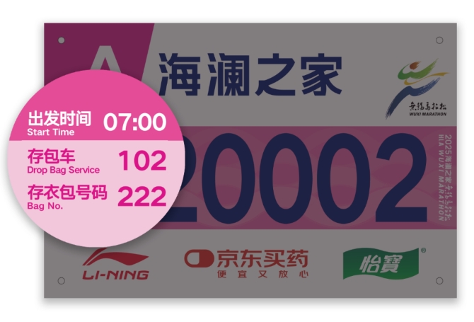 在分區字母和參賽號數字之外,號碼布中還將包含你的出發時間、存包車與存衣包號碼等更多的信息。錫馬的存包服務將面向馬拉松和半程馬拉松選手,比賽日,請按存包車編號前往對應區域進行存取包。別忘了,報到時領取的小號碼布,需要提前粘貼在你的存衣包上(劇透:今年的小號碼布是進化版哦~)