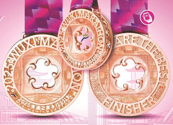 3月20日,2025無錫馬拉松開啟報到環節,今年完賽獎牌“芯花路放”同時亮相。玫瑰金色的馬拉松項目獎牌不僅采用了鏤空設計、蝕刻工藝,還與無錫的物聯網技術緊密結合,讓錫馬獎牌進入數字時代。