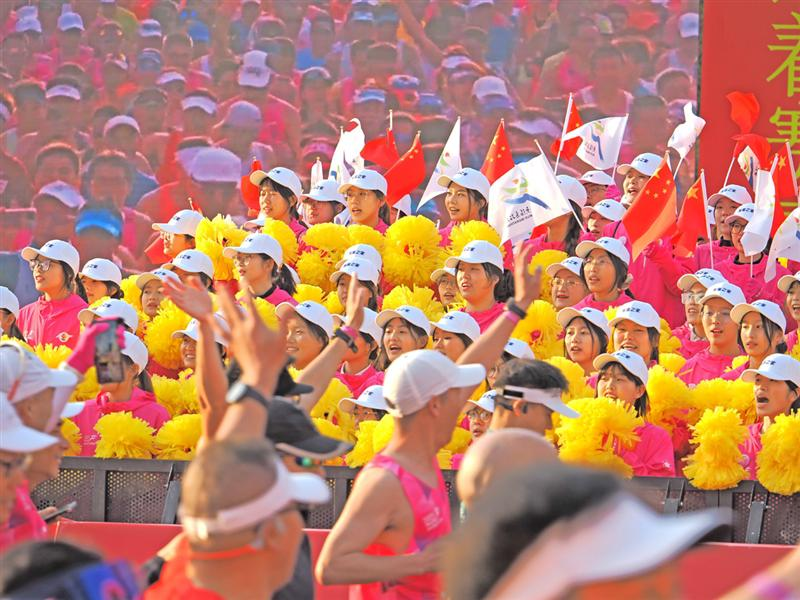 “加油!還有最后5公里!”上午9點(diǎn),賽道旁市民小李舉著自制應(yīng)援牌,為跑者吶喊助威。他的身后,是4600余名安保人員組成的“人墻”。安保人員在維持秩序的同時(shí),也為市民提供觀賽指引。“賽道穿越點(diǎn)很貼心,我騎車去觀賽點(diǎn)只繞行了10分鐘。”小李點(diǎn)贊道。