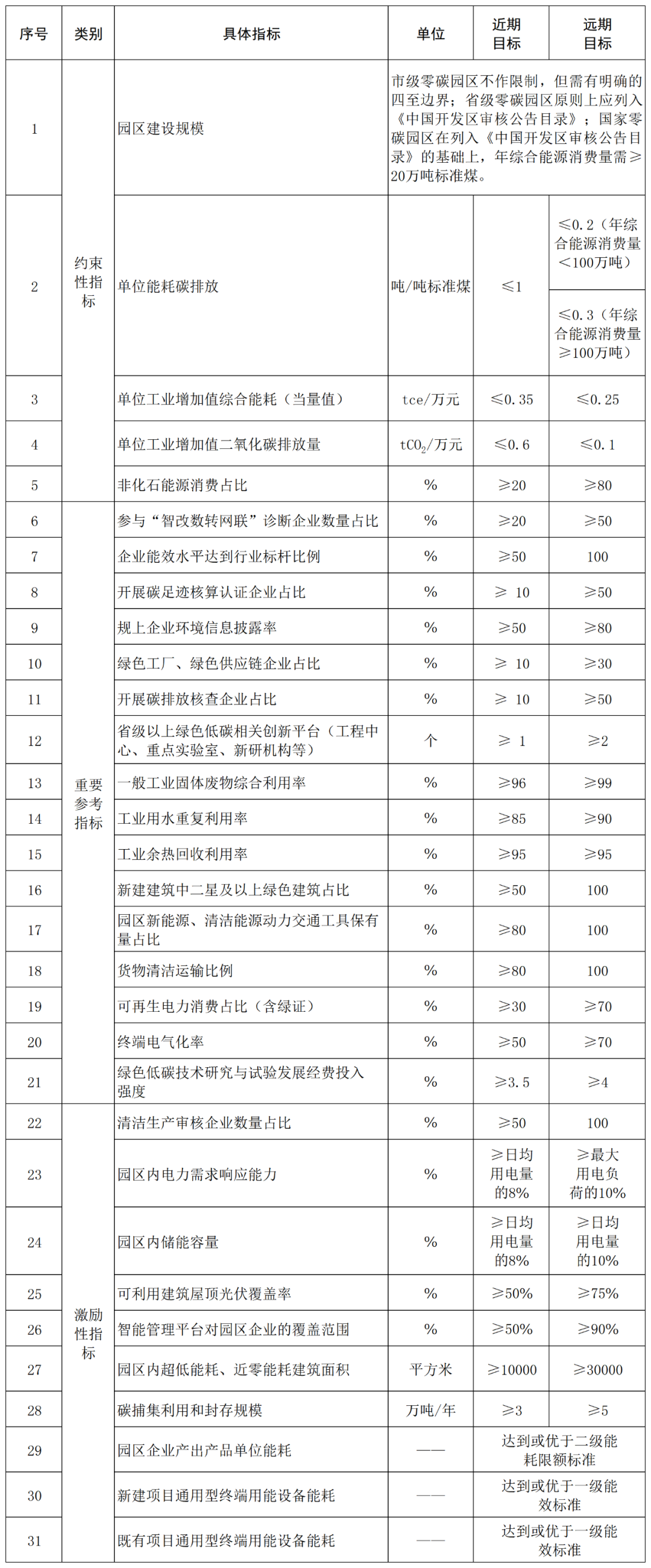 約束性指標(biāo):零碳園區(qū)建設(shè)必須達到的目標(biāo),是遴選確定園區(qū)建設(shè)名單和后續(xù)開展驗收評估的首要條件。達不到約束性指標(biāo)要求的園區(qū),原則上不得申請驗收評估。