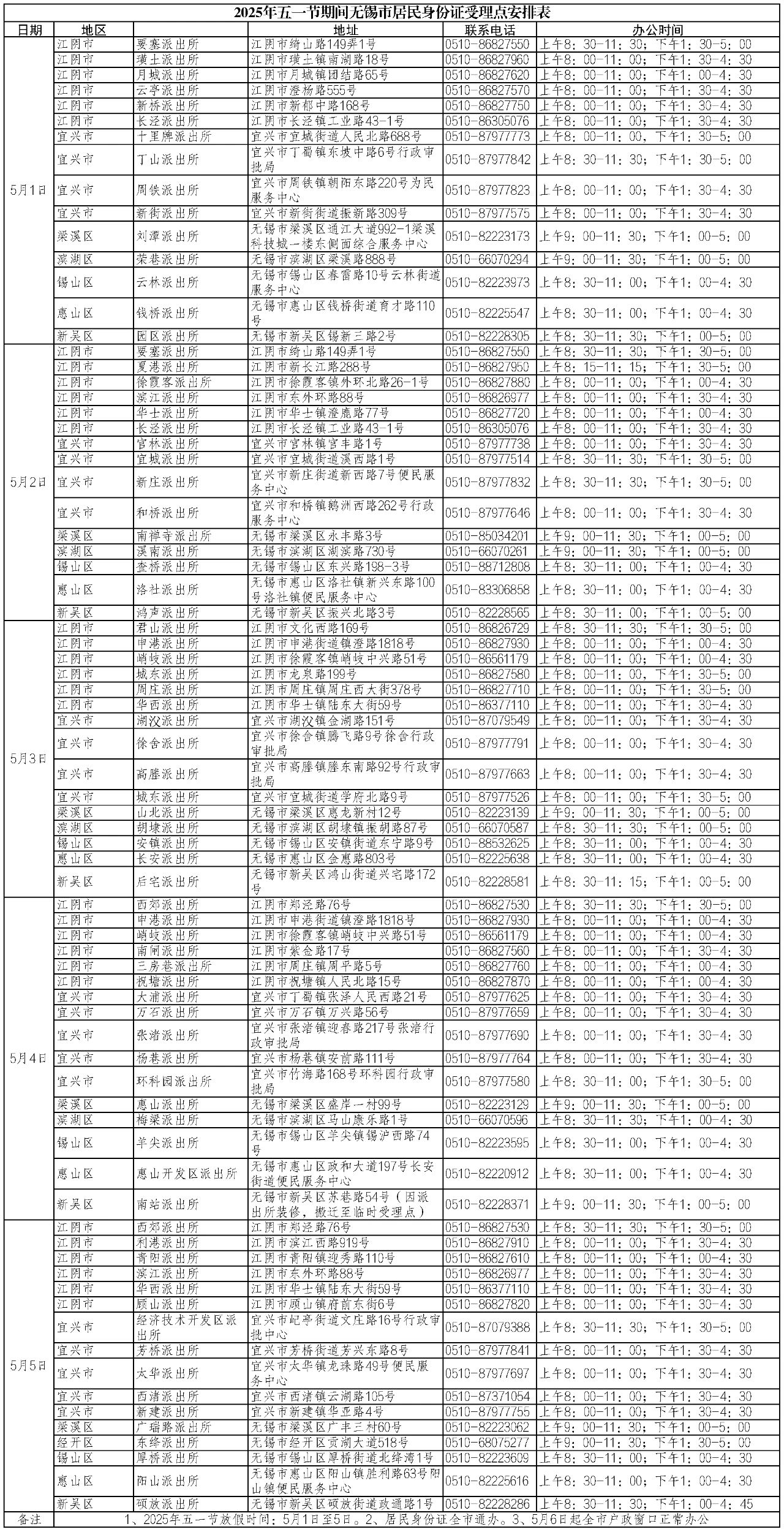 5月1日至5日,各市(縣)、區公安戶籍窗口開設居民身份證受理點正常辦理業務。