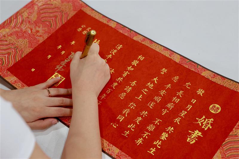 此外,圍繞“520”這個新人們喜愛的日子,各地婚姻登記處活動多多。在梁溪區,全省首個商業綜合體內的婚姻登記點正式啟用,并舉辦了“喜結梁緣”集體婚禮,以獨特的地域文化為背景,為新人打造了一場浪漫而難忘的婚禮。在濱湖區,在一場“520——同船共渡 情定蠡湖”的主題活動中,新人們乘坐船只,在蠡湖上共同度過一段浪漫時光,寓意夫妻同舟共濟、攜手共進。“重回80年代·煙火北橋”集體頒證活動則讓新人仿佛穿越回那個充滿煙火氣的年代,感受20世紀80年代的純真與美好,以一種懷舊而又新穎的方式開啟婚姻生活。在新吳區舉行的“梁鴻心相印 新吳愛同行”活動中,該區婚姻家庭指導服務中心掛牌成立,同時啟動了“愛·成長——新婚陪跑三年計劃”系列的“幸福大平臺建設”活動,將為新人提供婚姻家庭指導服務,幫助他們更好地適應婚姻生活,提升婚姻質量,構建幸福家庭。