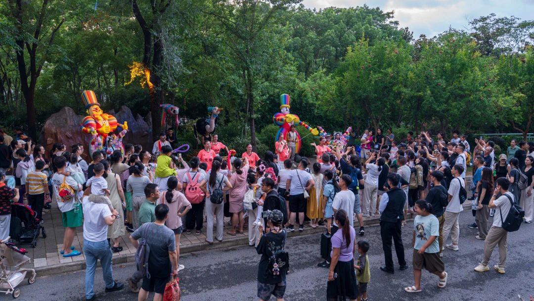 一場萌寵巡游在園區主道上演。