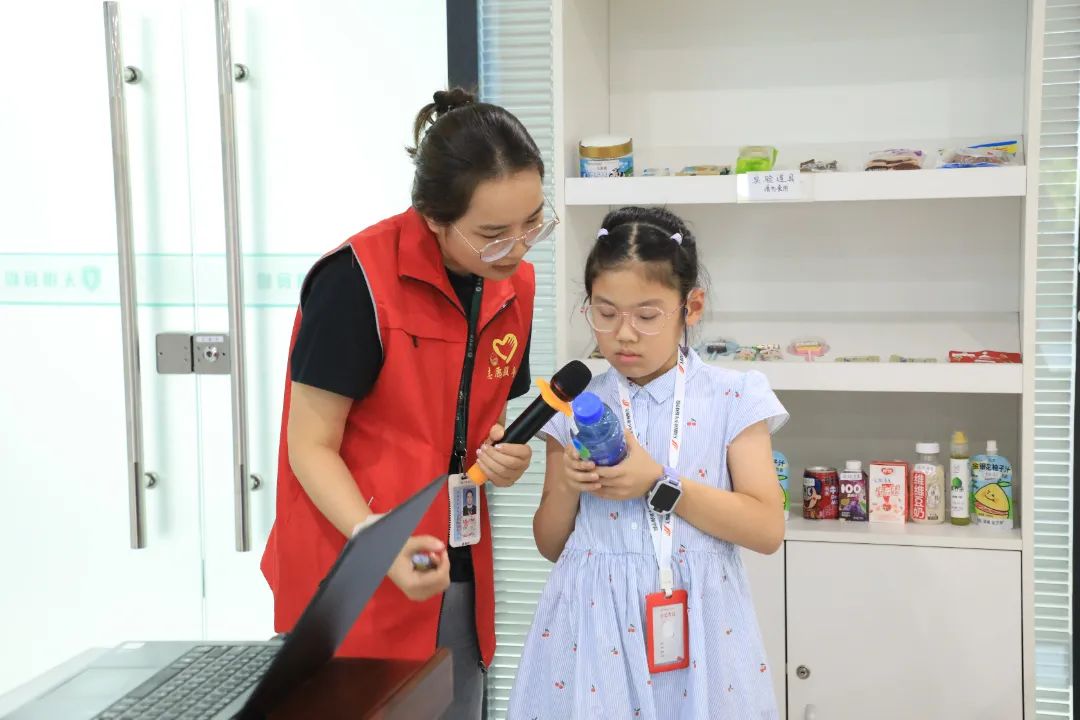 “配料表里的奧秘藏在這里!”中心科普老師通過圖文并茂的PPT,全面解析了食品標簽中各項指標的科學內涵,指導孩子們辨別更健康、更適合自己的產品,孩子們現場比對多款飲料和零食的配料表,在情景化"模擬超市"中實踐生產日期識別、營養成分解讀等實用技能,筑牢食品安全認知基礎。“怎么吃飯才能保證獲得足夠的營養?”在膳食寶塔模型前,中心科普老師用實物指導孩子們自主搭配三餐,營養均衡的理念深植童心。