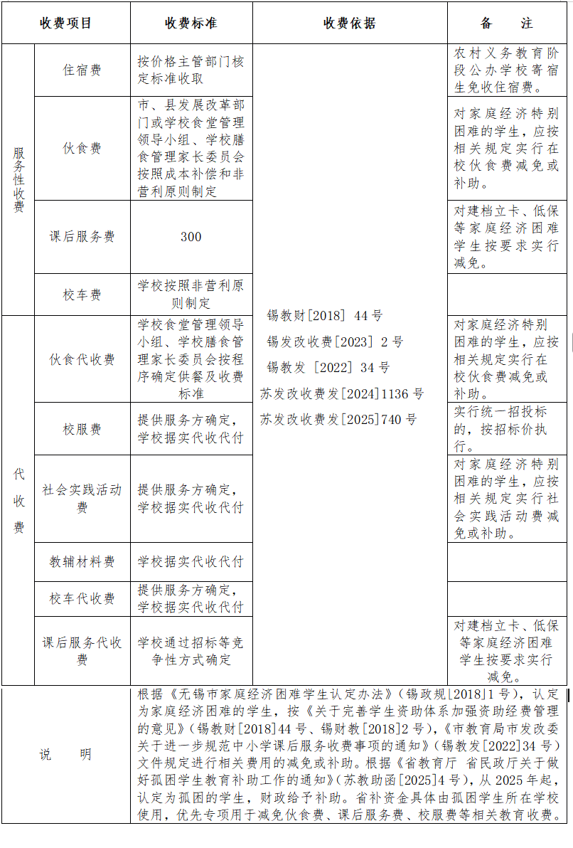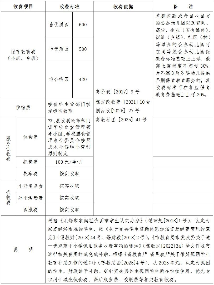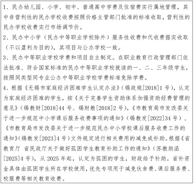 無錫市區民辦中小學(幼兒園)收費說明