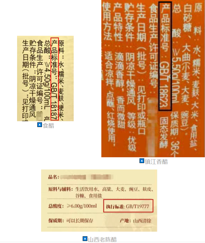 食醋:GB/T 18187是食醋國家標準,GB/T 18623是鎮江香醋,GB/T 19777是山西老陳醋。