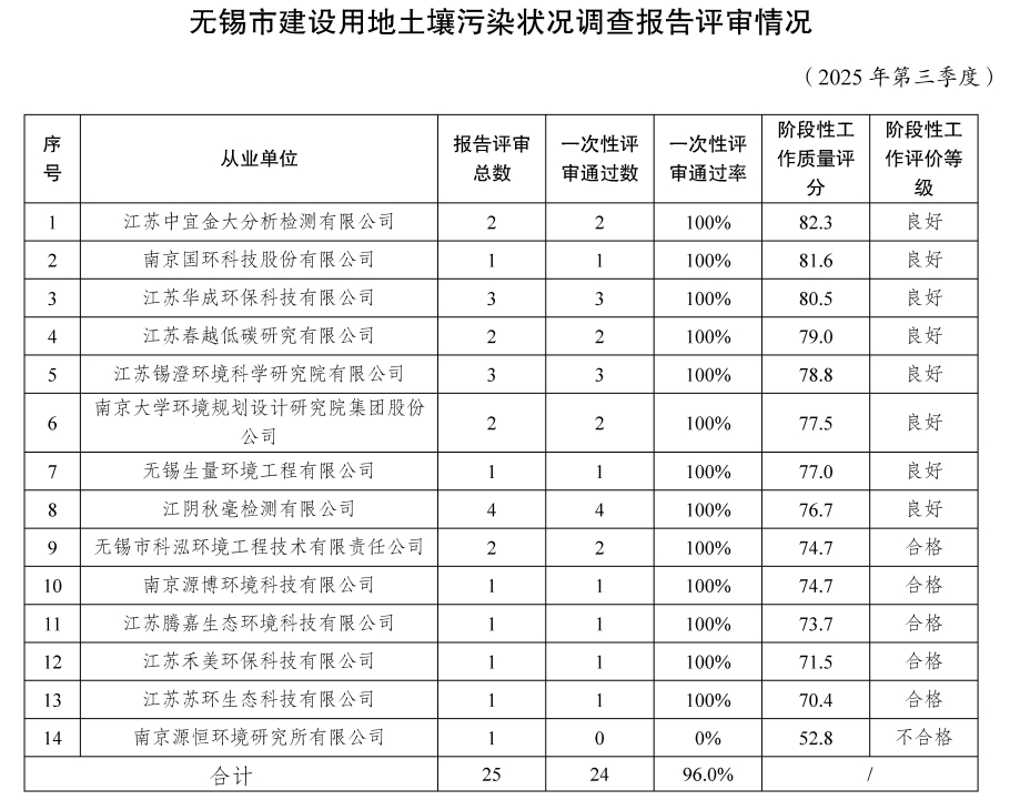 | 內(nèi)容概述 | 無錫市2025年第三季度建設(shè)用地土壤污染狀況調(diào)查報(bào)告評(píng)審情況 | ||||