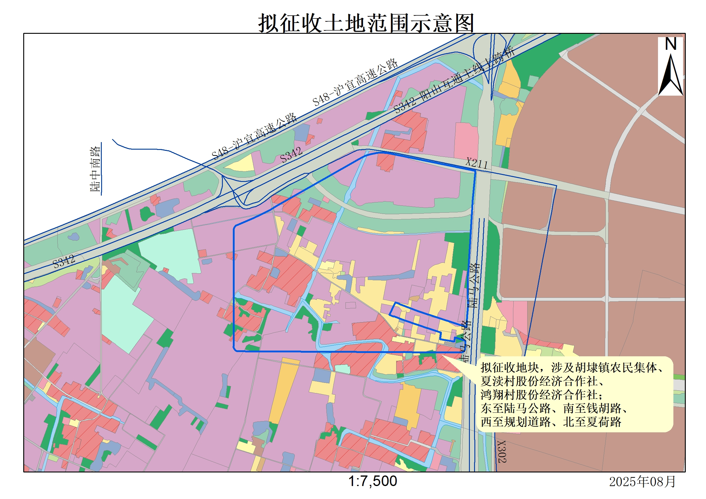 本次擬征收地塊為陸馬公路與錢胡路交叉口西北側(cè)地塊,位于無錫市濱湖區(qū)胡埭鎮(zhèn)農(nóng)民集體、胡埭鎮(zhèn)夏瀆村股份經(jīng)濟合作社、胡埭鎮(zhèn)鴻翔村股份經(jīng)濟合作社范圍內(nèi)。擬征收土地位置詳見附圖。