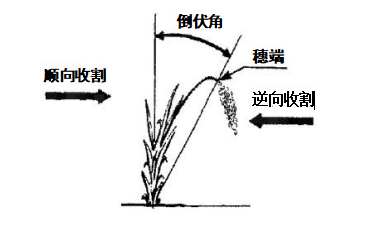 倒伏角小于45°時,對收獲作業(yè)影響有限, 一般不進(jìn)行特殊處理; 倒伏角在45°~60°時,應(yīng)盡量避免逆向收獲;倒伏角大于60°時,應(yīng)盡 量采用順向收獲,半喂入機型應(yīng)適當(dāng)調(diào)快扶禾(鏈條)速度,全喂入 機型應(yīng)加裝“扶倒器”并更換“防倒伏彈齒”,同時調(diào)整撥禾輪與割刀的 相對位置,調(diào)整彈齒角度后傾,將割臺降至適宜高度。