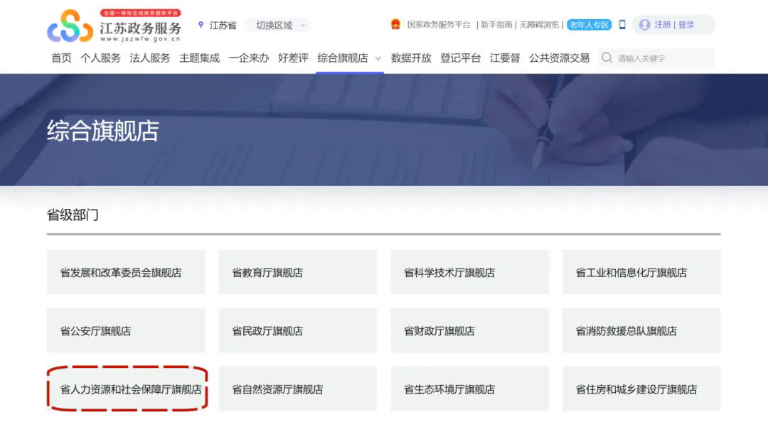 ②在綜合旗艦店下選擇“省人力資源和社會保障廳旗艦店”。