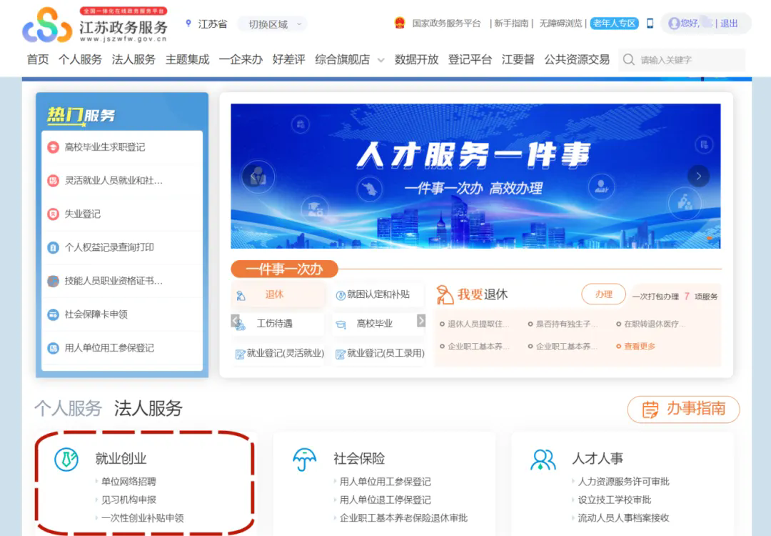 ①登錄江蘇政務服務網(https://www.jszwfw.gov.cn/)。