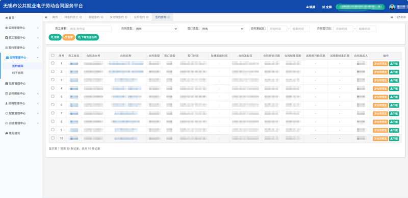 平臺試運行以來,已累計服務60余家企業,簽訂電子勞動合同超2000份。作為首批“嘗鮮”的企業,無錫地鐵運營有限公司人力資源部副部長張弛算了一筆“效率賬”:9月初,公司300余名員工進行勞動合同續簽,原先需要把員工集中到大會議室,現場填寫、核對、蓋章,由于工種多樣,填寫易出錯,公司不得不準備近1.5倍數量的空白合同備用,整個過程耗時費力。