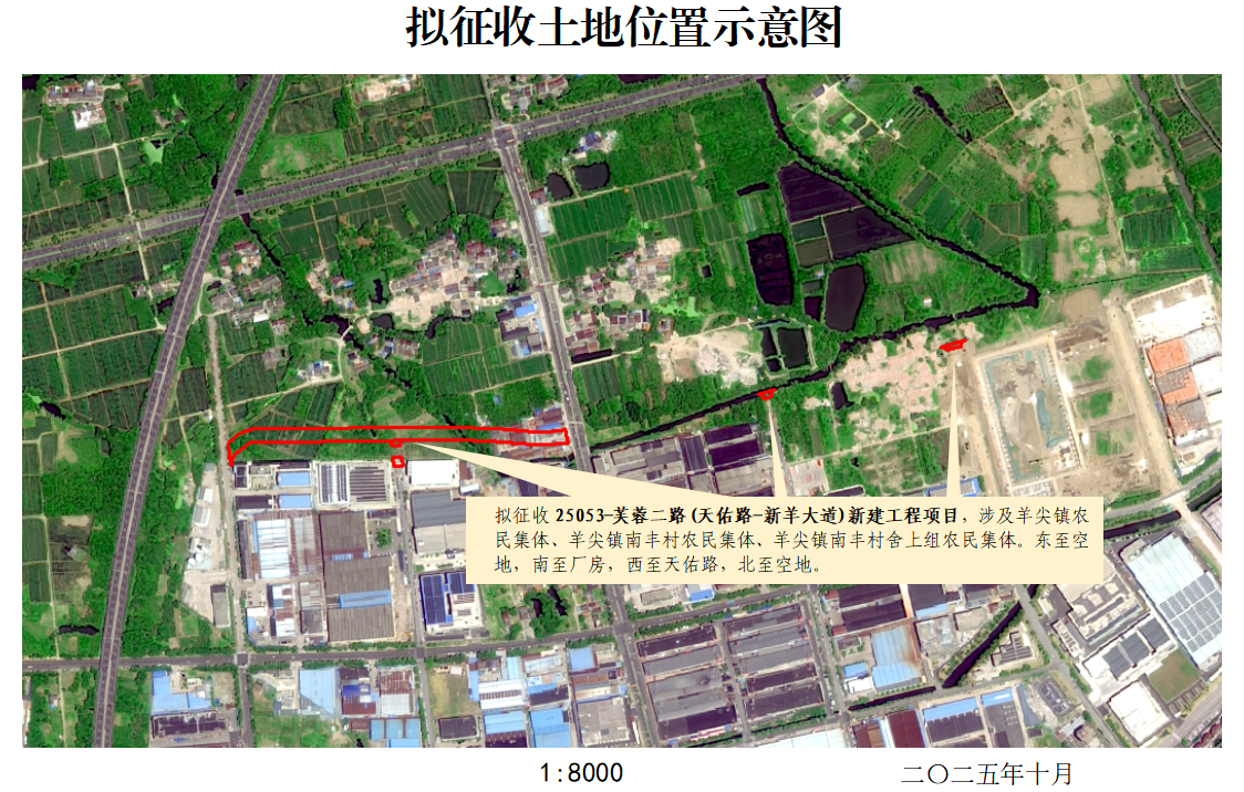 本次擬征收土地位于羊尖鎮農民集體、羊尖鎮南豐村農民集體、羊尖鎮南豐村舍上組農民集體范圍內。擬征收土地位置詳見附圖。