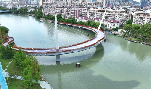 這份愜意,源于梁溪河作為我市美麗河湖建設“一號工程”的全面煥新。2022年至2023年,高度對標“綠、美、凈”要求,梁溪河建成6.5公里“十里畫廊”,梁湖生態園、仙蠡墩公園等景點建設帶動綠化全面提升,沿岸含綠量升至64%。不僅如此,透水路面鋪就的雨水花園、蜿蜒的海綿淺溪、凈化能力超強的人工濕地,織成了一套水體內循環系統;20萬沿岸居民的生活污水、學校和商業綜合體的廢水被精準攔截;23條支浜通過清淤、曝氣等舉措,水質均達Ⅲ類。系統建設使這片濱水區域打好了水生態“底盤”。
