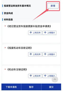 1.必須在平臺上下載《老舊營運貨車報廢更新資金申請表》,打印并簽字蓋章后再上傳到申請材料中,否則,審核不予通過。