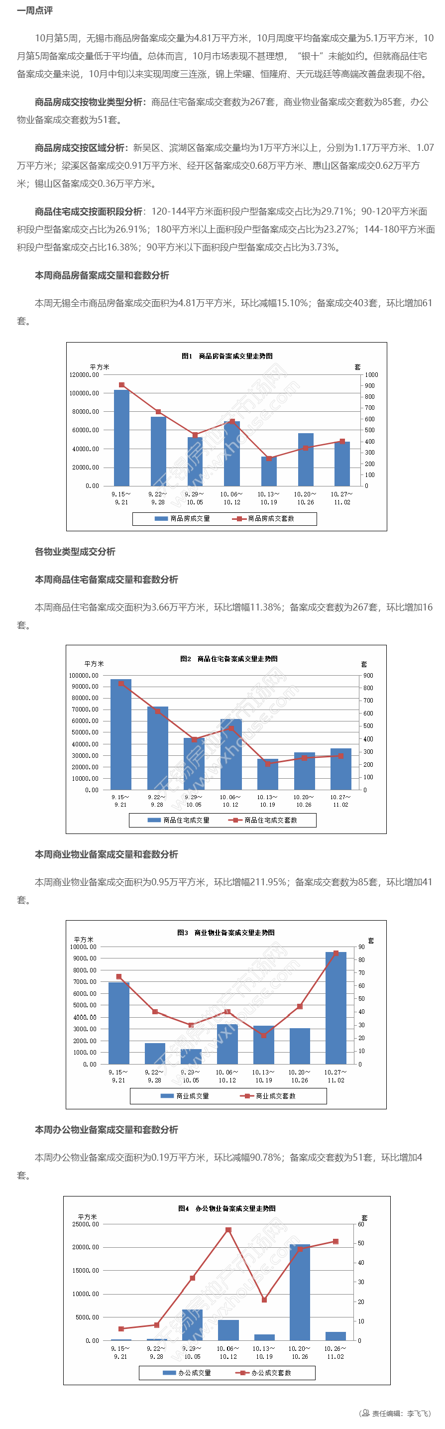 內容概述 10.27~11.02無錫商品房一周備案成交4.81萬平方米