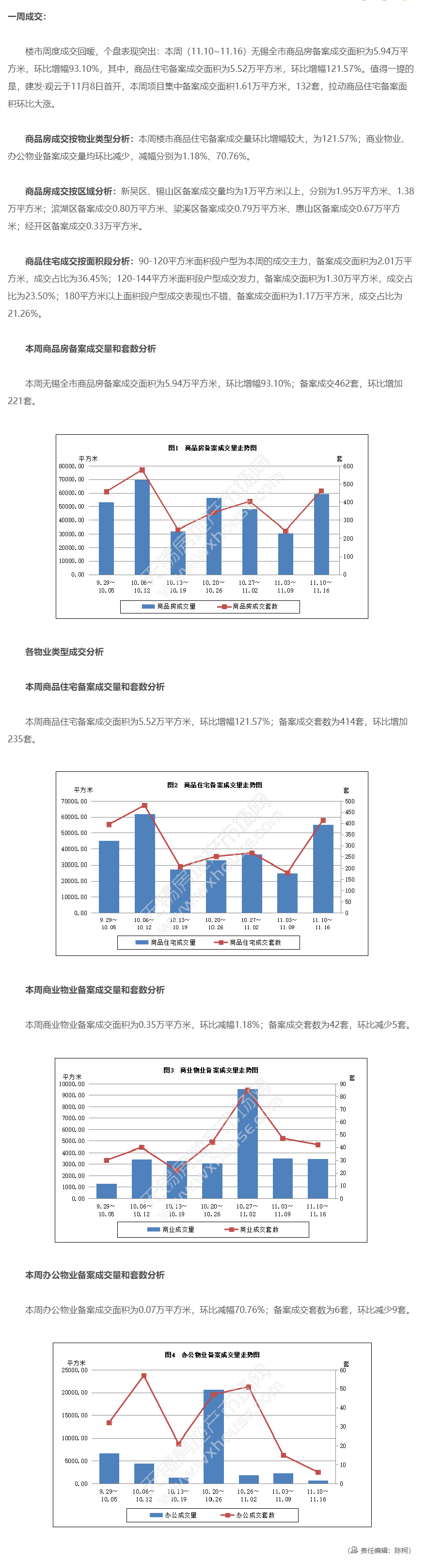 內容概述 11.10~11.16無錫商品房一周備案成交5.94萬平方米