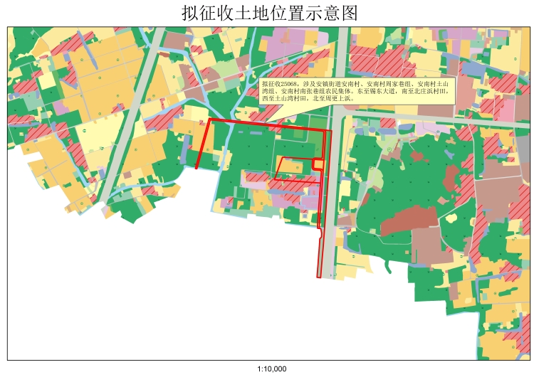 本次擬征收土地位于安鎮街道安南村、安南村南張巷組、安南村土山灣組、安南村周家巷組農民集體范圍內。擬征收土地位置詳見附圖。
