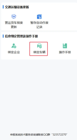 3.點擊“交通運輸設備更新”,綁定企業和車輛