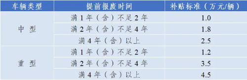 表1 提前報廢老舊營運貨車補貼標準