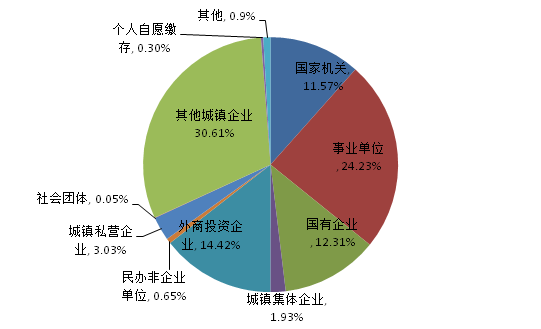 2021年三季度實繳職工數(shù)按不同性質(zhì)單位分類占比圖