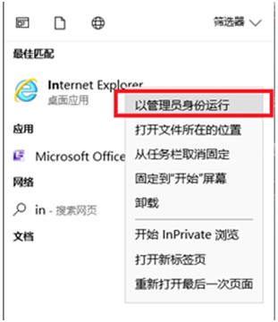 處理方法:右鍵點(diǎn)擊ie圖標(biāo),在菜單中選擇“以管理員身份運(yùn)行”。