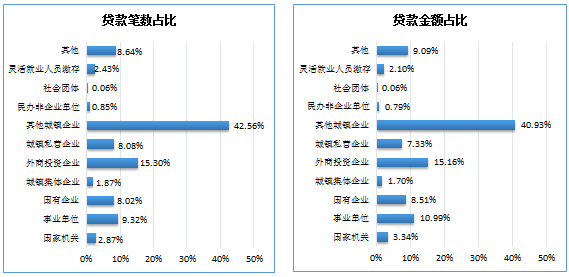 2024年四季度職工貸款筆數(shù)及貸款金額按單位性質(zhì)分類占比圖