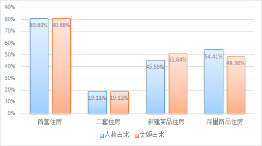 從貸款群體來看,剛需與改善型住房需求職工分別占貸款總人數的23.71%和59.91%。從單位性質來看,以城鎮私營企業及其他城鎮企業職工為主,貸款筆數和貸款金額占比分別為52.08%、52.9%。從購房面積來看,職工貸款購買90(不含)-120㎡房屋居多,占貸款總人數的43.3%。從主借人繳存基數來看,貸款主要以中、低收入職工為主,分別占貸款總人數的28.58%、70.69%。從貸款類型來看,純公積金貸款和組合貸款占比分別為78.44%、21.56%。從貸款結構來看,首套住房公積金貸款職工占貸款總人數的80.89%,二套住房公積金貸款人數占19.11%。具體放貸結構如下: